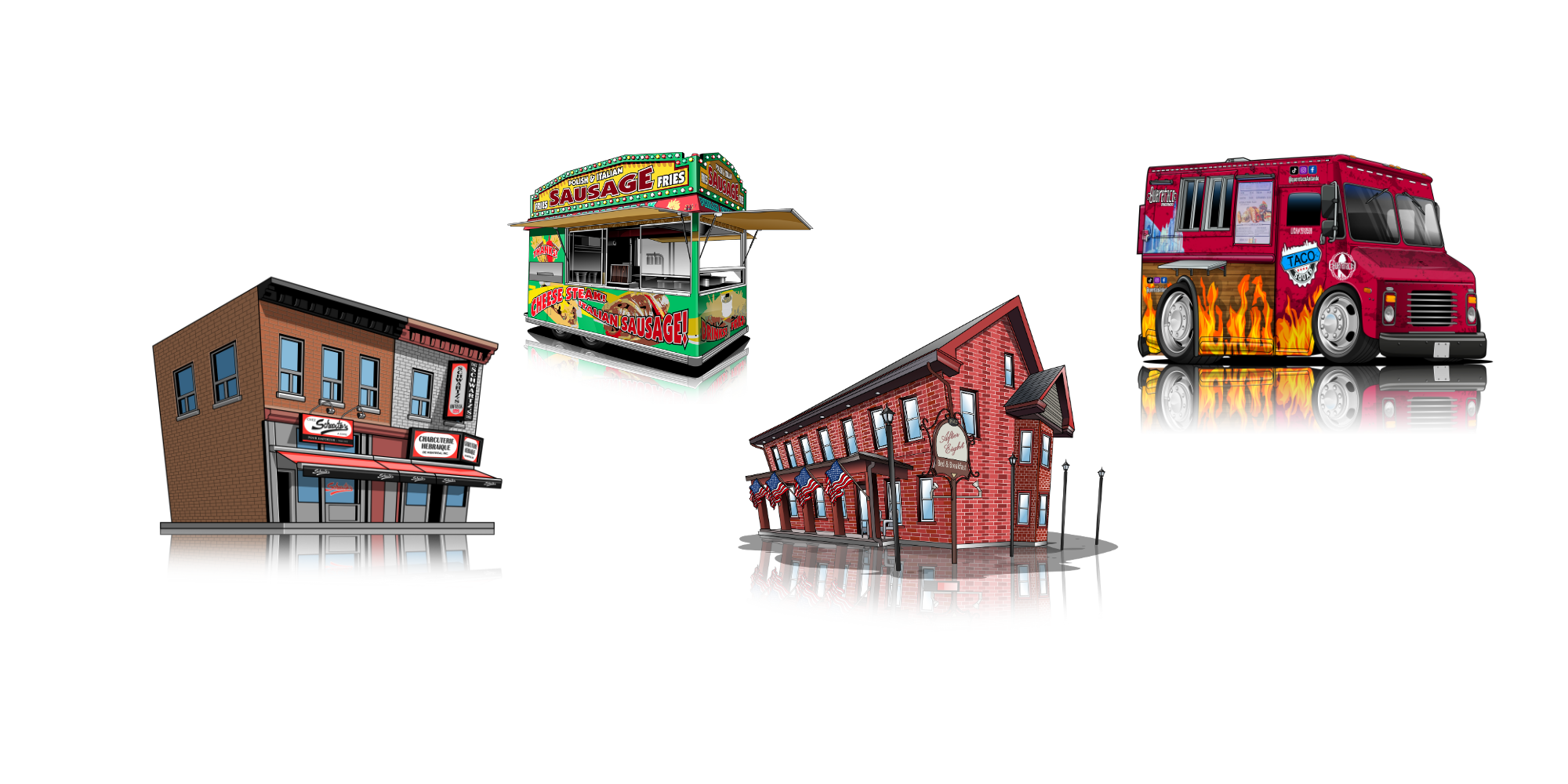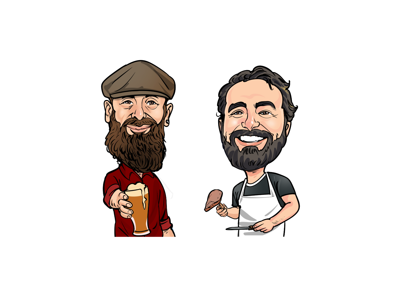 Illustrations, cartoons, and logos for eateries, bars, events, food trucks, and more