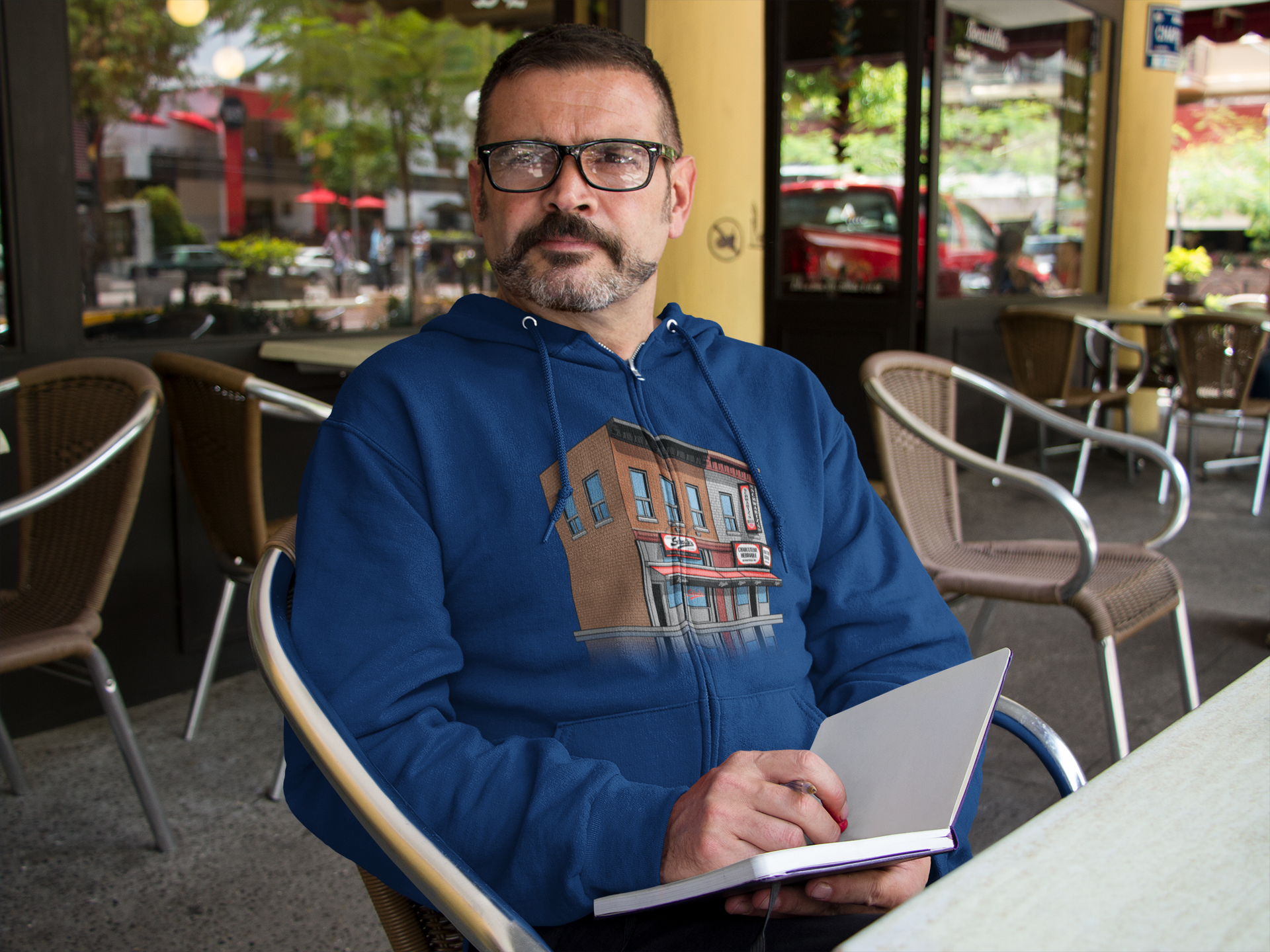 Our Cafe Cartoon or Custom Drawing look great on our cotton/poly blend hoodies. Perfect for teamwear, promotional merch, or special events!